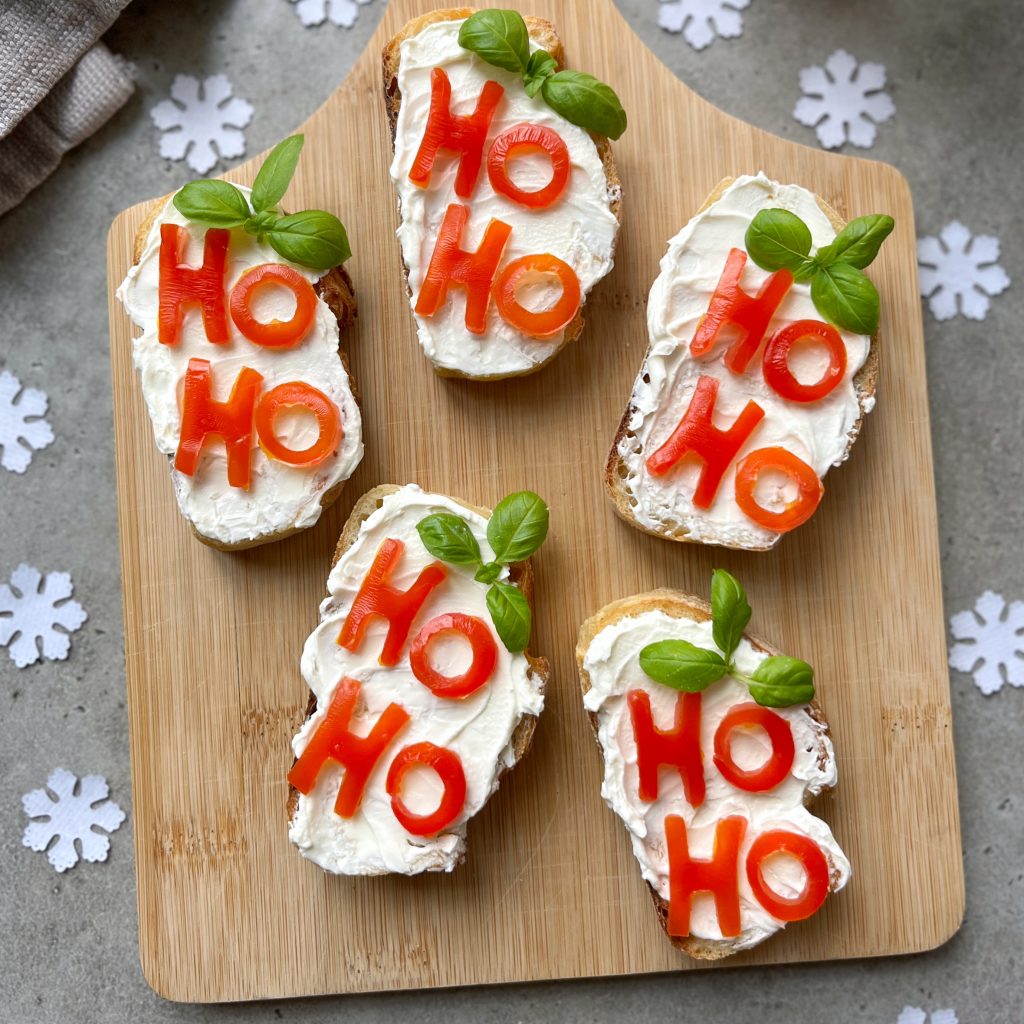 For a fun and festive touch, use alphabet cookie cutters to shape the tomatoes into Santa’s favorite catchphrase – Ho Ho Ho!