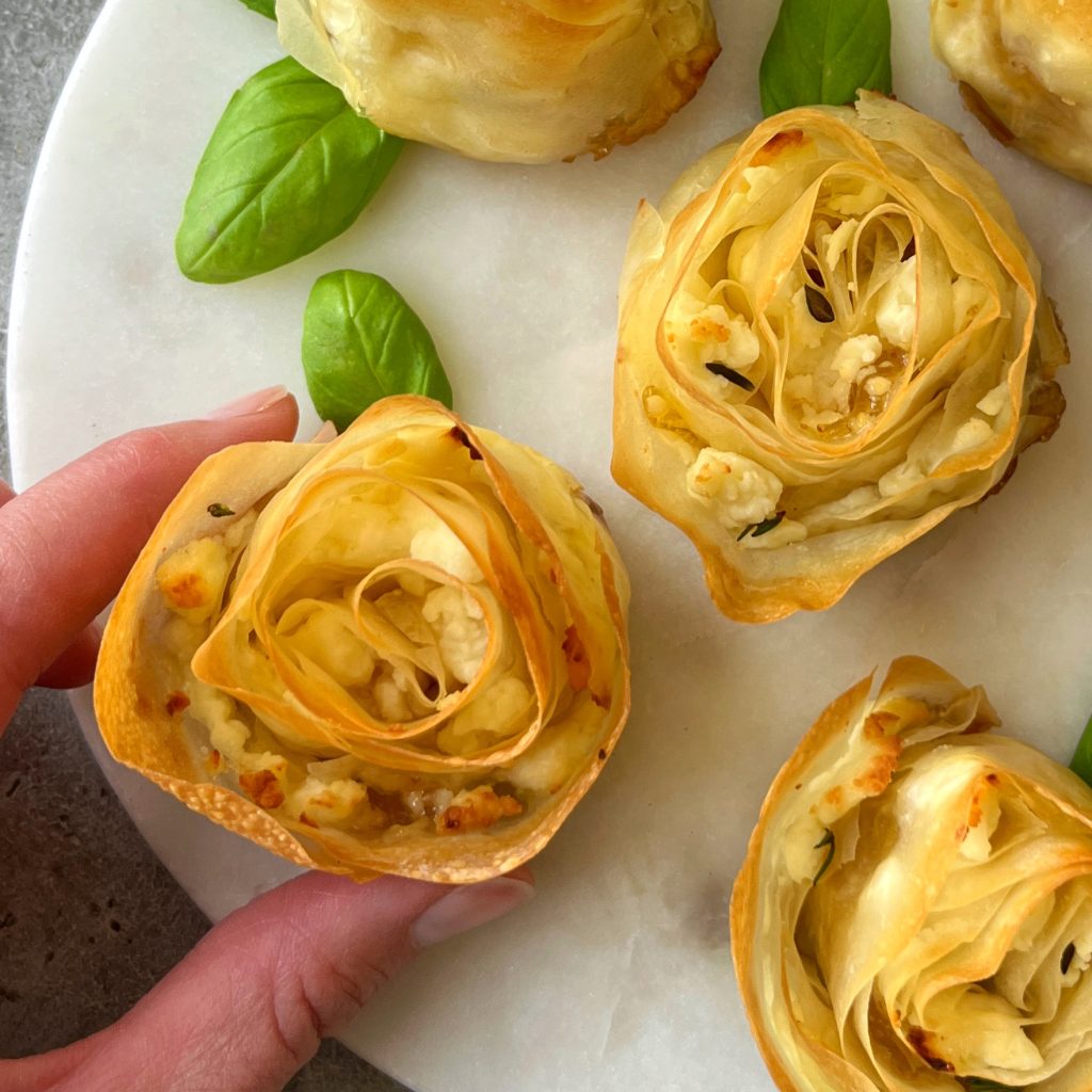 Wow everyone with these beautiful phyllo appetizers shaped into adorable roses. Not only are they elegant, but they are delicious too, with their crispy, flaky exterior and creamy filling.
