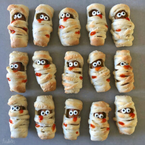 Who doesn’t love sausage rolls? Give this classic savory snack a Halloween makeover with these Mummy Sausage Rolls! You might want to make a double batch because they’ll disappear so quickly.