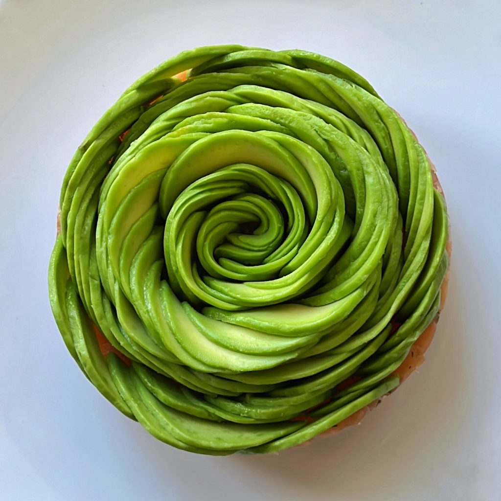 Not all avocados will be suitable to roll into a rose. It has to be perfectly ripe, meaning it’s bright and green, slightly soft on the tip, but not too firm throughout.