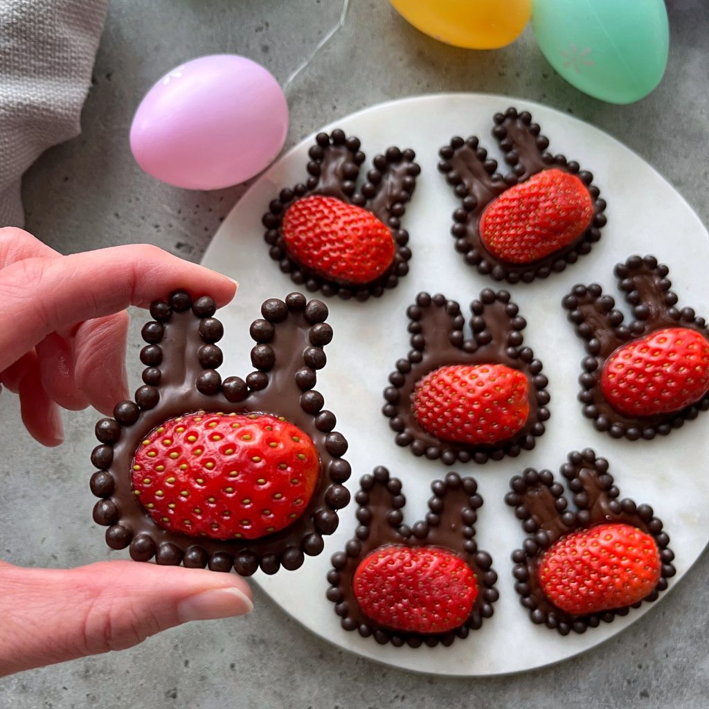 Strawberry Bunnies with dark chocolate are perfect for Easter celebrations and birthday parties. They are so easy to make you can even get the kids involved.
